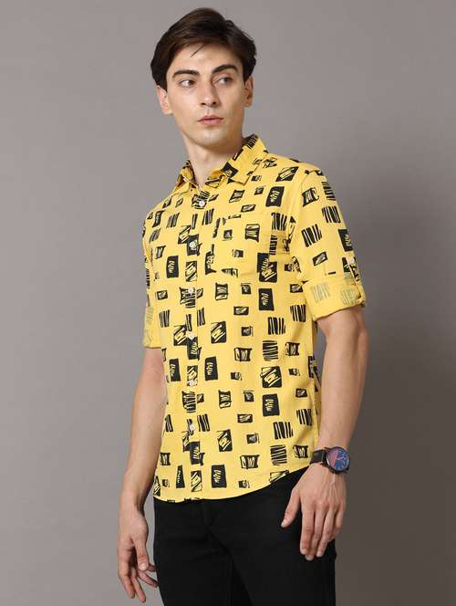 yellow colored printed casual shirt