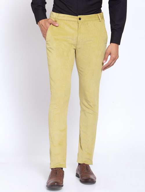 - » yellow solid flat front casual trouser