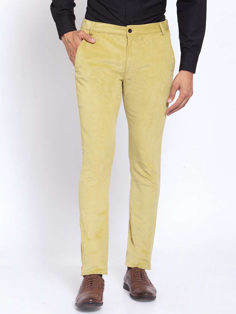 yellow solid flat front casual trouser