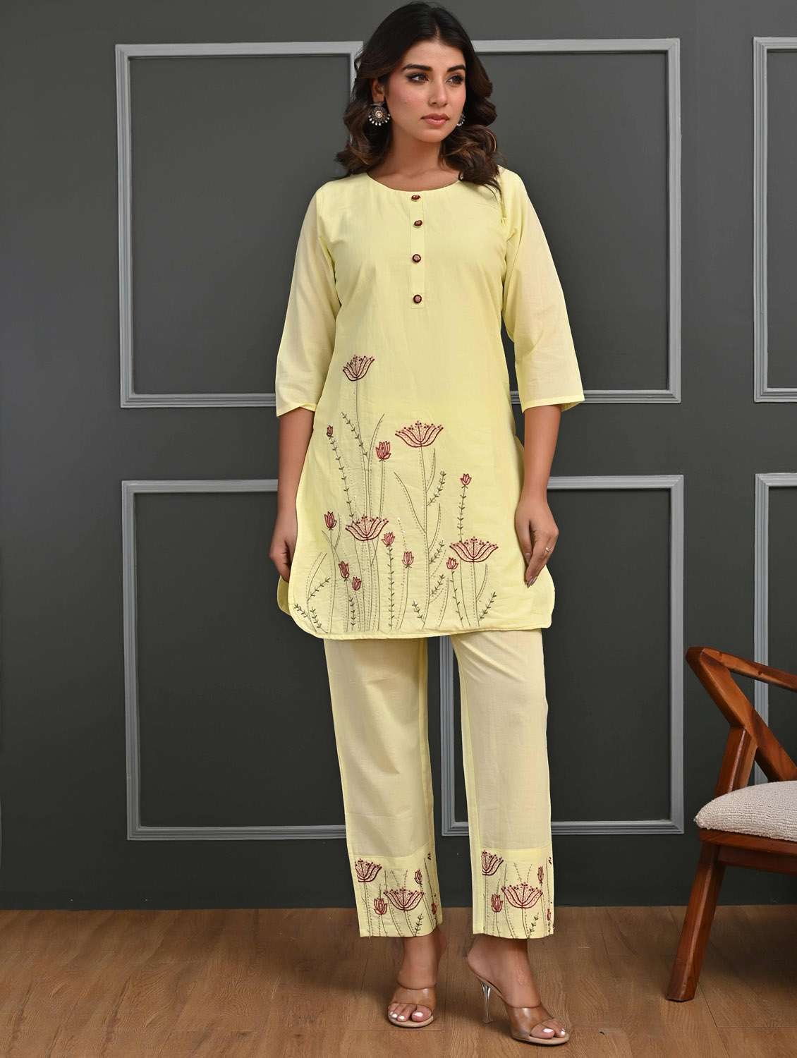 women three quarter sleeve ethnic co-ord set