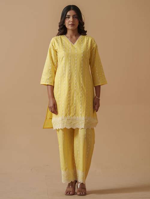 women solid with work three quarter sleeve ethnic co-ord set - 22282196 -  Standard Image - 3 women solid with work three quarter sleeve ethnic co-ord set - 22282196 -  Zoom Image - 3
