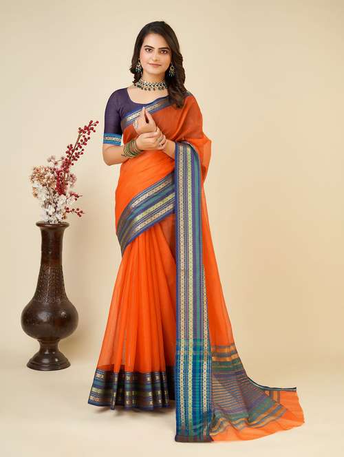 We offers Fancy Bollywood Fashionable Kota Doria Silk Saree with Rich intricate design at all over Body, Border & Grand Pallu. Blouse, Border and Pallu have very fine Contrast color matching with Saree body. Saree & Blouse Material is Cotton Silk which very Soft and Skin Friendly material. This fatka Jacquard saree. This Saree Has a Length 6.30 Meter Which Includes 0.8 meters of the blouse. These new Bollywood designer fashionable saree for women can be used as Party wear saree, Festival saree, wedding saree on every Occasions. Product colour may slightly very due to photographic lighting sources or your monitor settings.