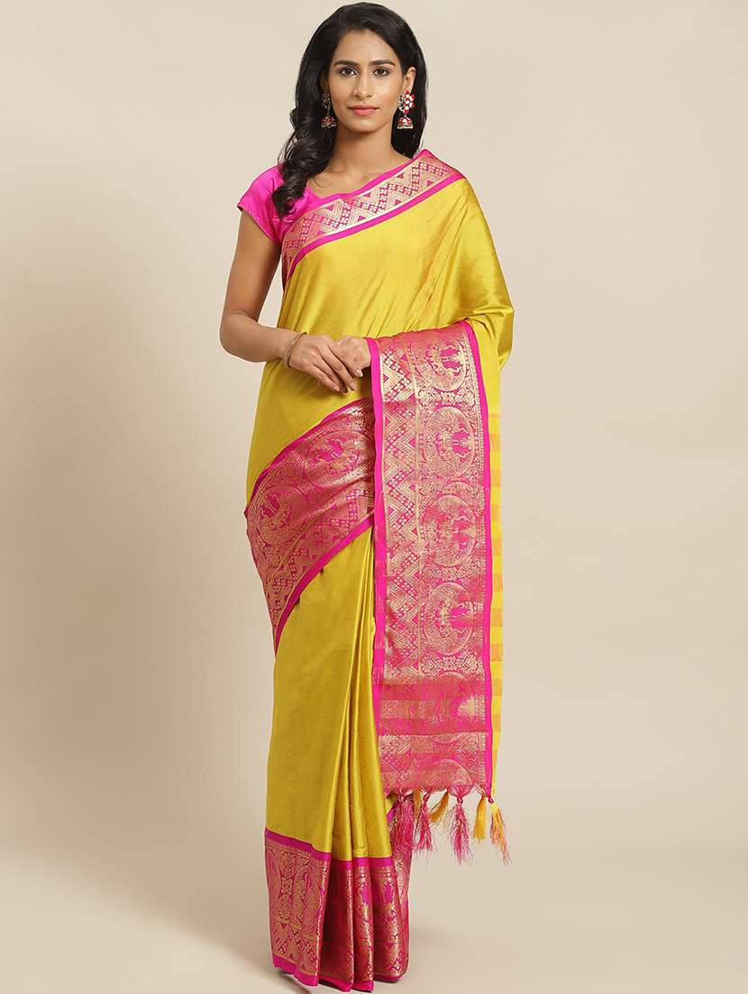 women's self design yellow colored saree - 19629515 - Very Small Image - 1
