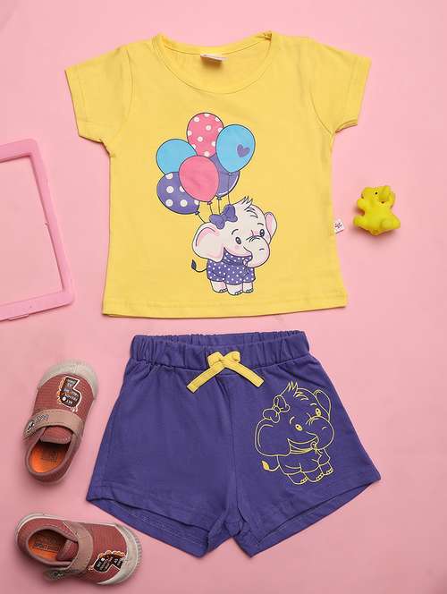 - Browse through the huge collection of casual wear twin sets and jump suits for girls in yellow colors and designs to make your young lady look the fashionista that she is.