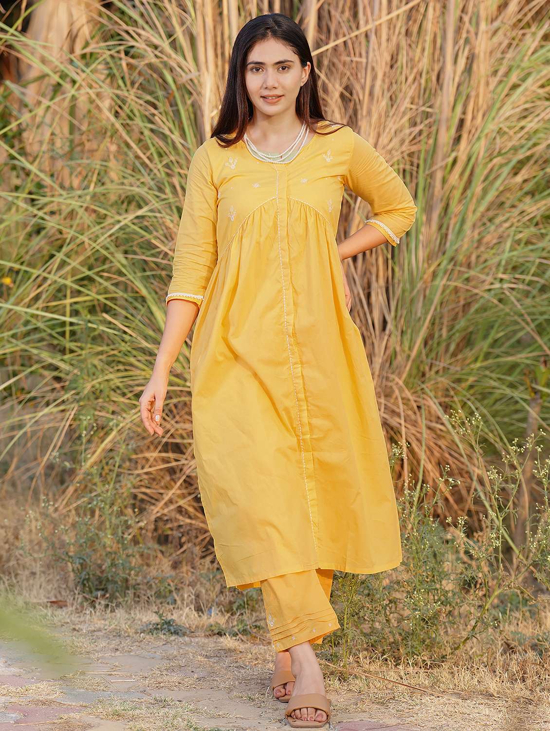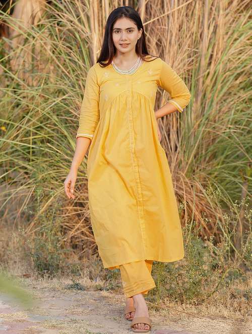 • Find gorgeous sets of ethnic wears in trending designs in yellow colors suitable for casual wear of occasions.