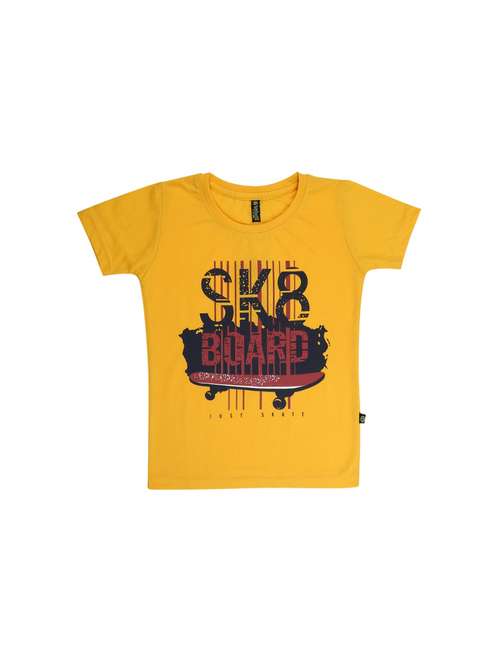 yellow printed round neck t-shirt