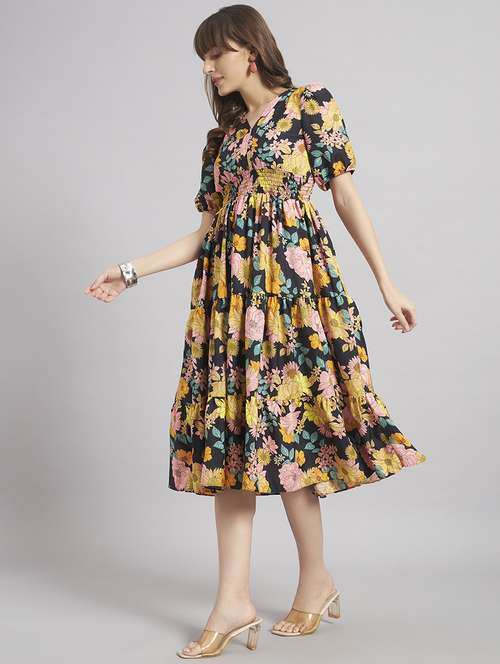 women floral puff sleeve tiered dress