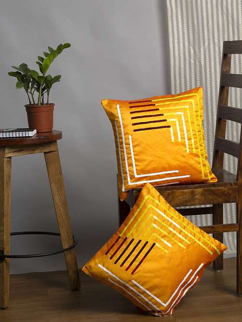 - » alina decor yellow embroidered set of 2 cushion covers