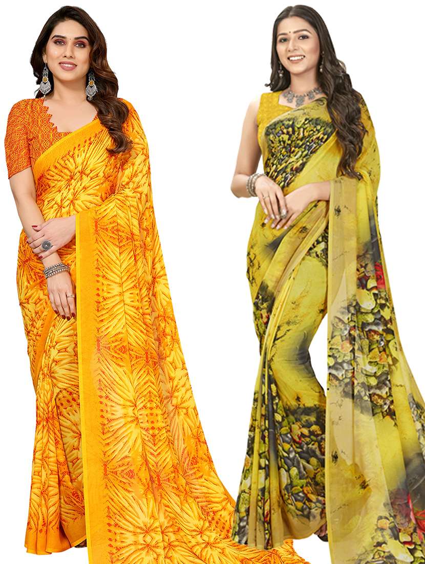women pack of 2 casual wear combo sarees with blouse