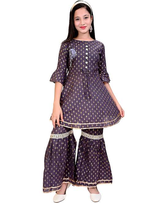 girls self design kurta sharara suit set