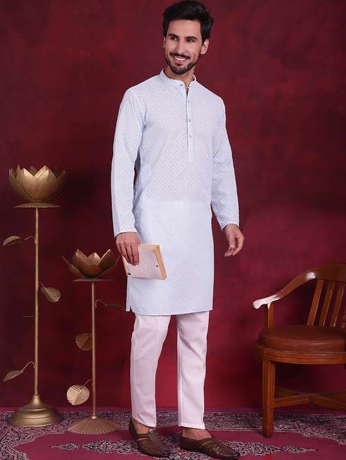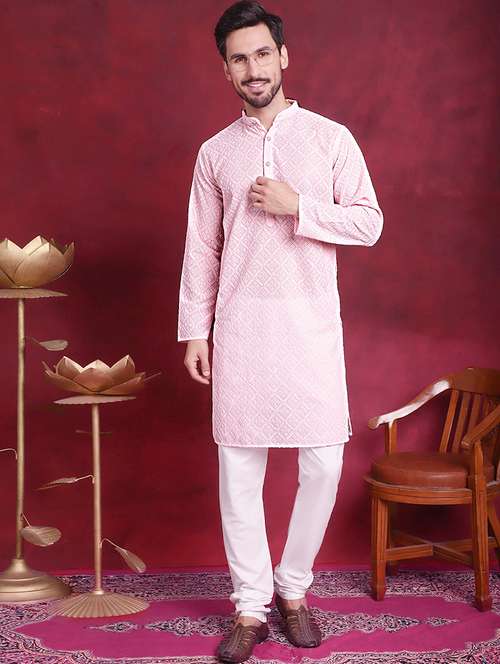 men mandarin neck kurta pyjama ethnic wear set