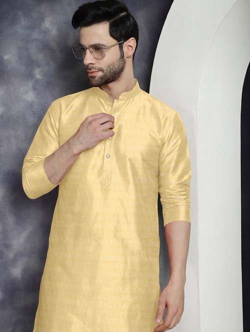 Yellow Jacquard Kajukatri Design Kurta For Mens