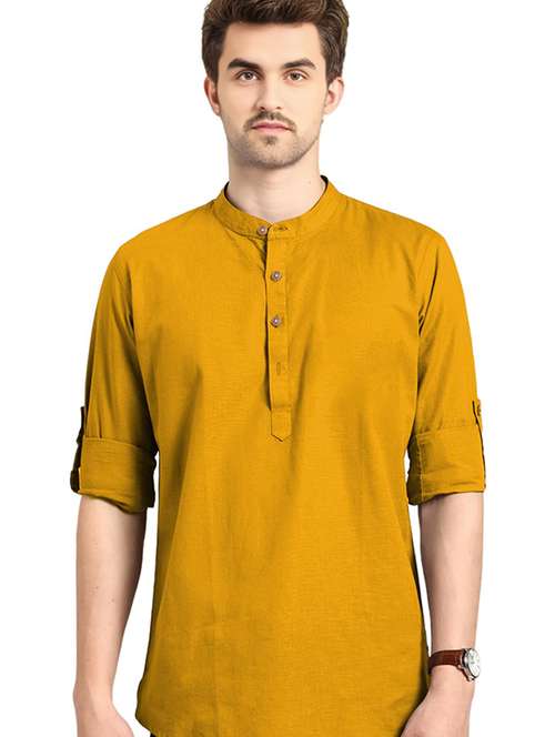 men solid mandarin neck short kurta