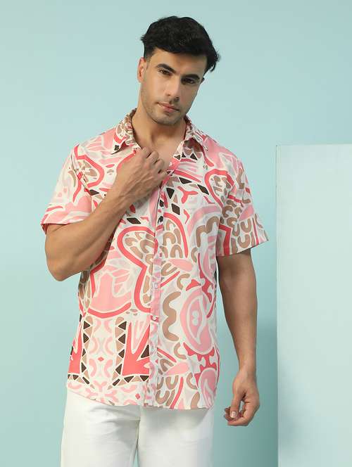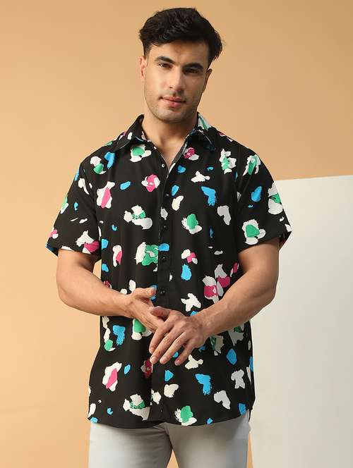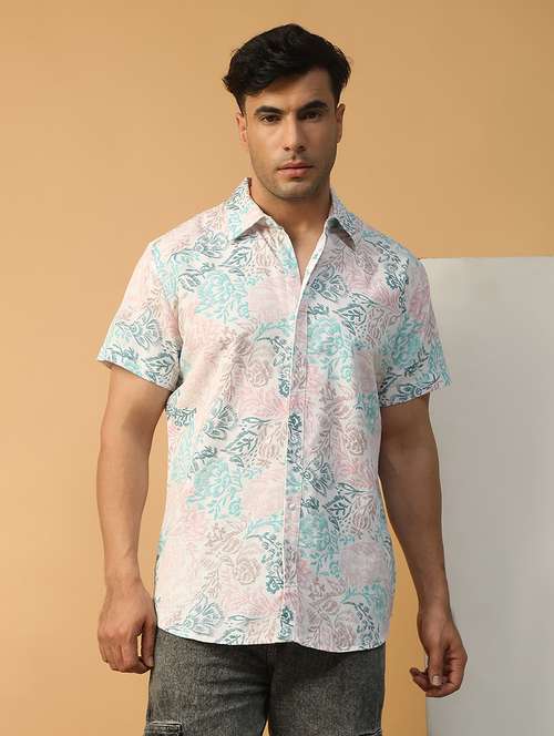 men floral printed short sleeve regular fit casual shirt