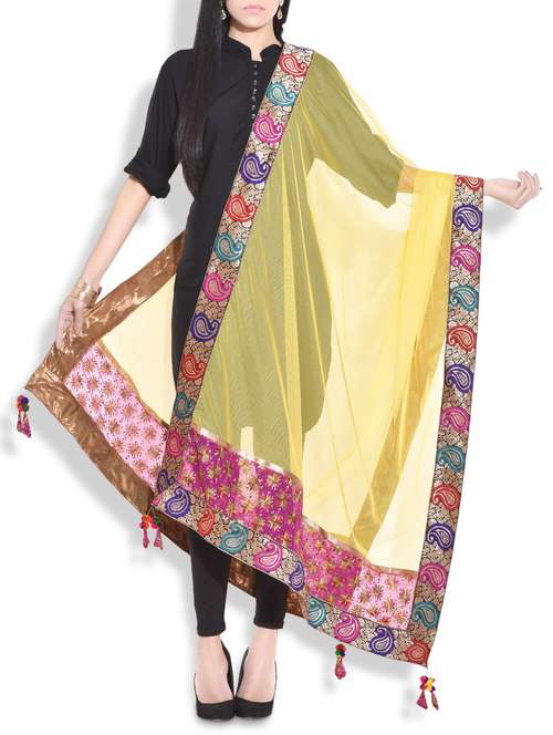 - » Yellow paisley embroidered phulkari dupatta