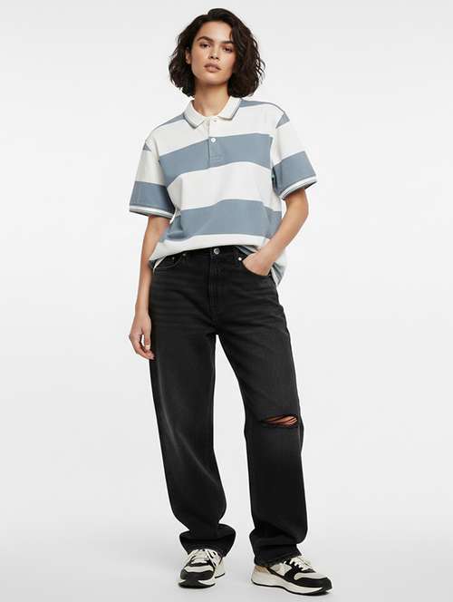 women striped short sleeve oversized polo t-shirt
