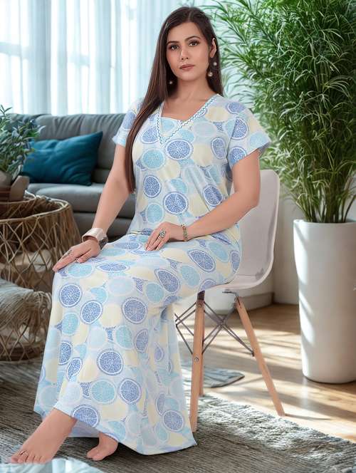 Slip into effortless elegance with the Sarina Satin Sweet Lemon Printed Night Gown. Made from soft, silky satin, this night gown is designed to keep you cool and comfortable all night long. Featuring a flattering V-neckline and short sleeves, it offers a relaxed yet feminine silhouette. The playful Sweet Lemon print adds a refreshing, cheerful touch to your nighttime routine. Lightweight and breezy, it’s perfect for warm nights or lazy mornings at home. For long-lasting softness, machine wash gently. Style meets comfort in this charming nightwear essential.