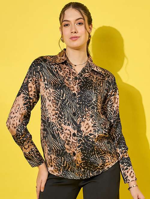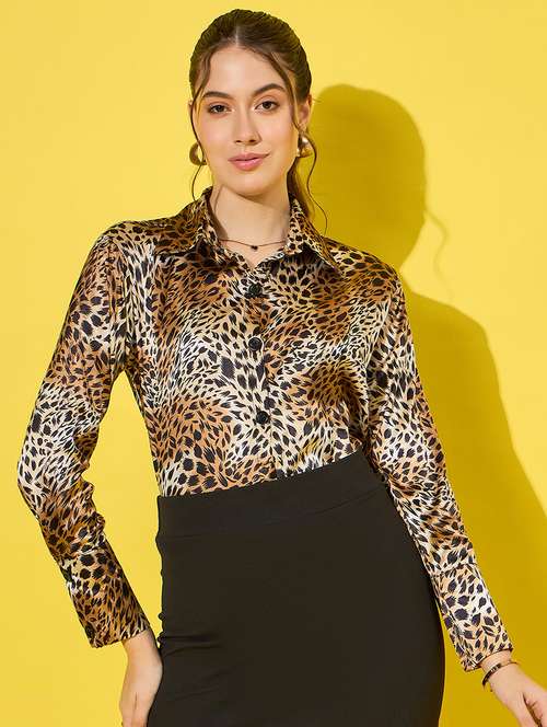 - » women animal printed collared shirt