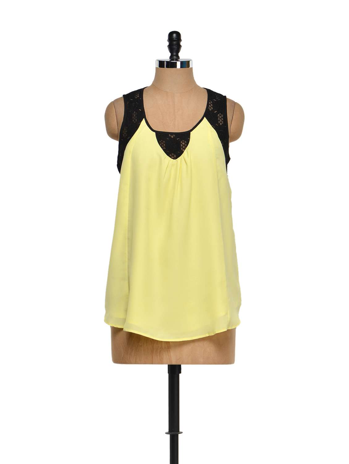 - » Yellow Sleeveless Top With Black Lace