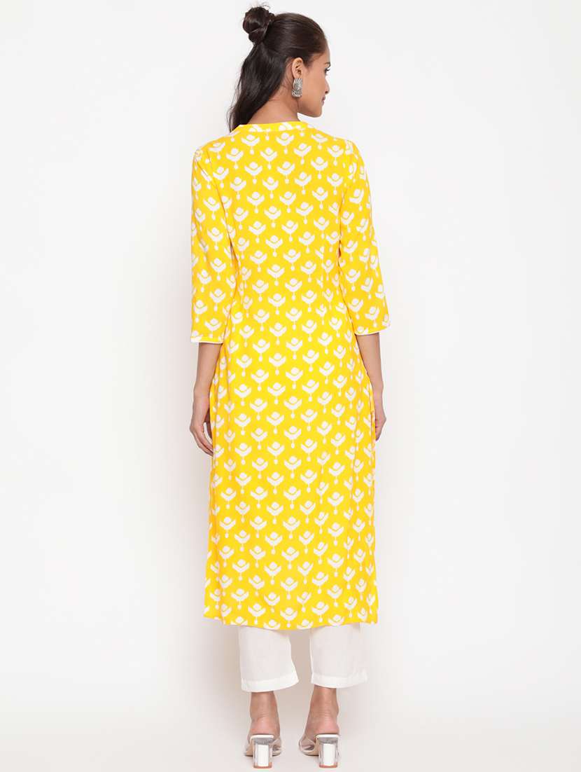 - » women printed three quarter sleeve a-line kurta