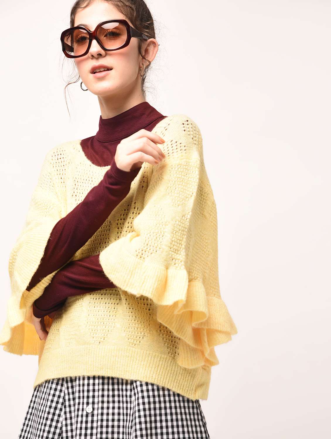 bat wing sleeved pointelle knit pullover